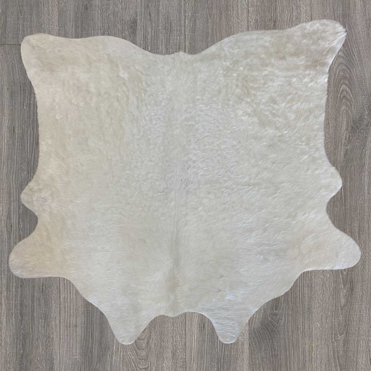This small size, creamy white cowhide rug is from Brazil and measures approximately 5.5 x 5 feet. Brazilian cowhide rugs are the world’s finest, distinguished by suppleness and quality.